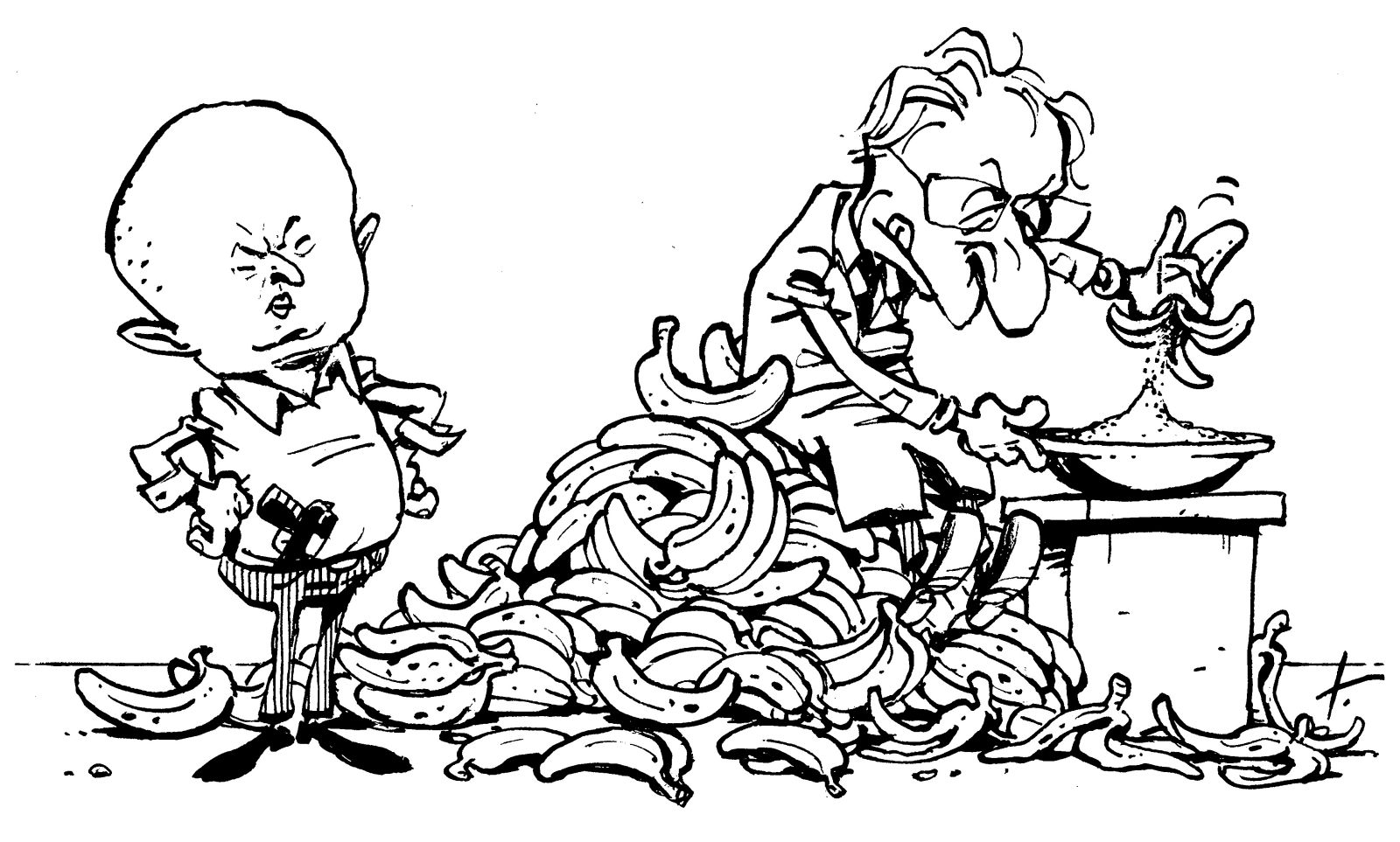 Kralj banan Rastoder srčno upa na poraz Generala Glanzkopfa na volitvah, saj bo le tako dobil prvovrsten kader. (hojskača bo zaposlil kot izločevalca kokaina iz banan press)