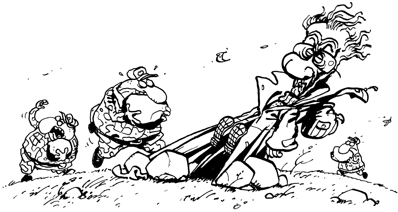 Peter Voščenka ima precej naporen dopust na Gorenjskem. (kadarkoli meteorologi napovedo hudo uro, ga lokalni teritorialci obtežijo s kamni, da ga ne bi odpihnilo press)