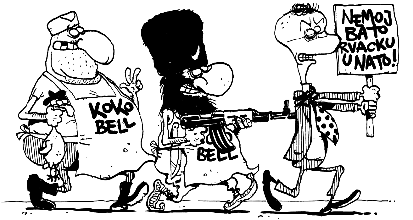 Brat Podpoštenjak si je želel, da bi bil referendumski listek v obliki virmana. (izterjevalci v imenu srbskega kokobela ga lovijo z mačetami in s sekirami press)