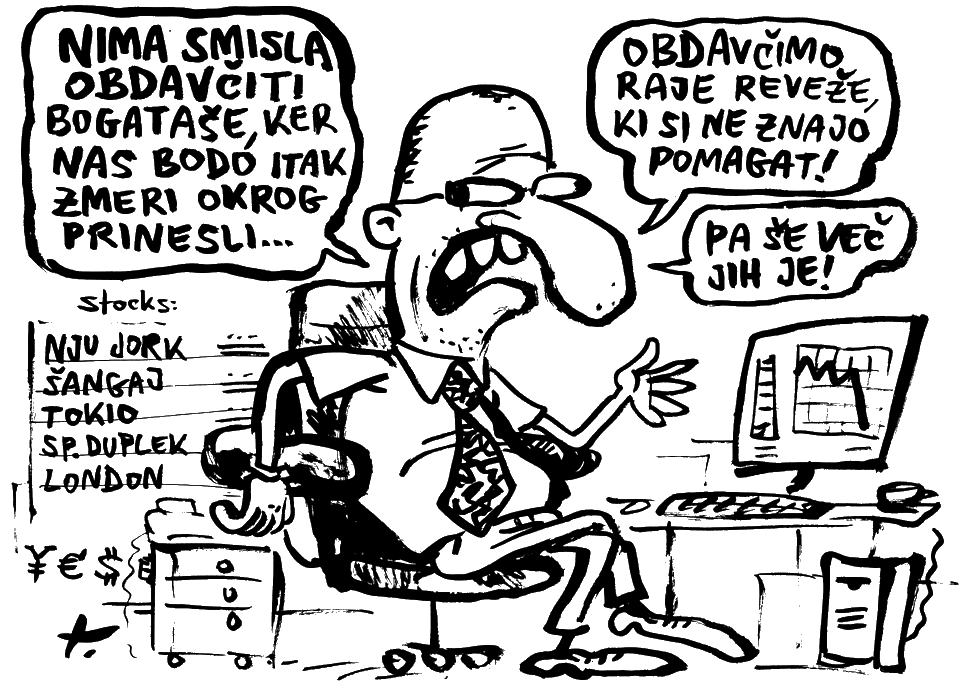 »Ko že rahlo osivel mladoekonomist, ki vsa leta streže s protislovji, kot razlog za svoje nasprotovanje novemu davku navede »argument«, da bodo bogati le še bolj goljufali, se človek res ne more načuditi: ali ekonomiste šolajo s pomočjo Alana Forda?«
