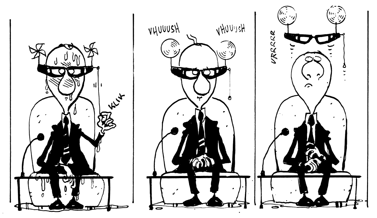 Žerjavec se spet močno poti pred TV-kamero. (ukradli so mu očala z ventilatorji press)