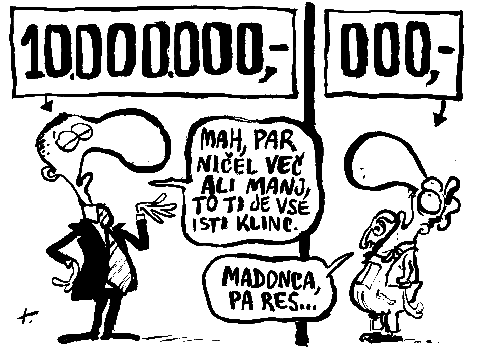 »Milijon, deset milijonov, milijarda, deset milijard, razlika je samo v ničlah zadaj. Od milijona navzgor je vse bolj ali manj podobno.«