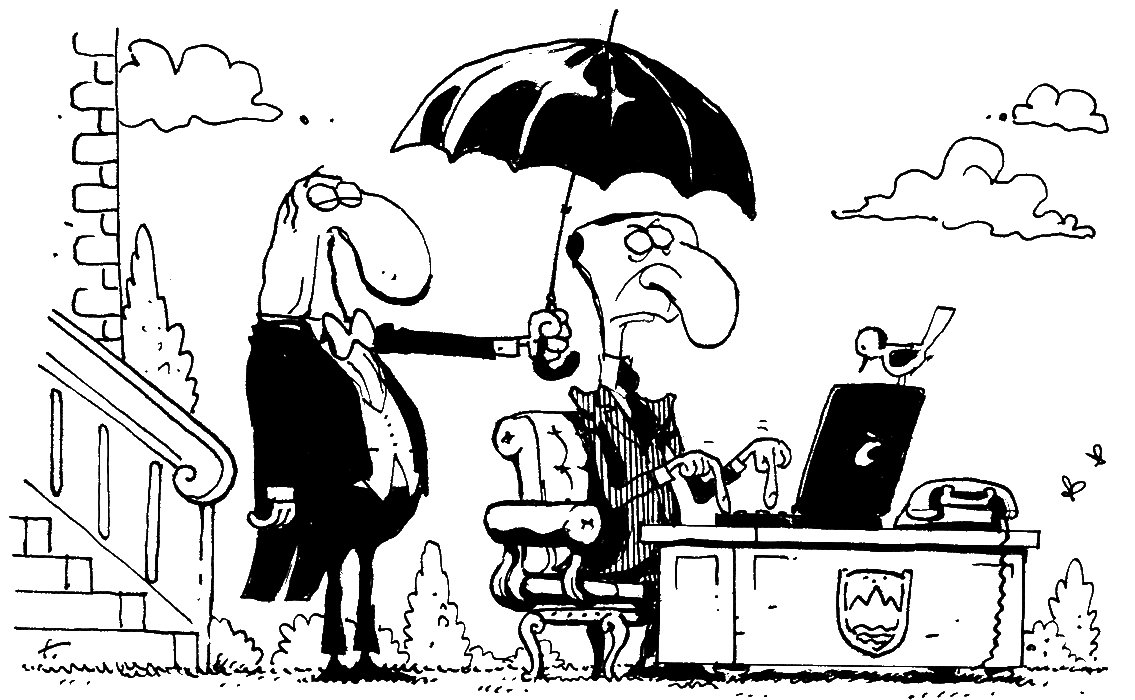Že tretji teden Kahel Ehjavec vztrajno zavrača vselitev v Mladiko in uraduje na dvorišču. (zunanje ministrstvo mora pač biti zunaj)